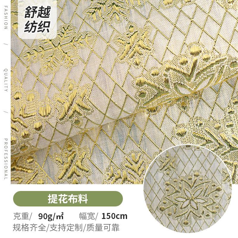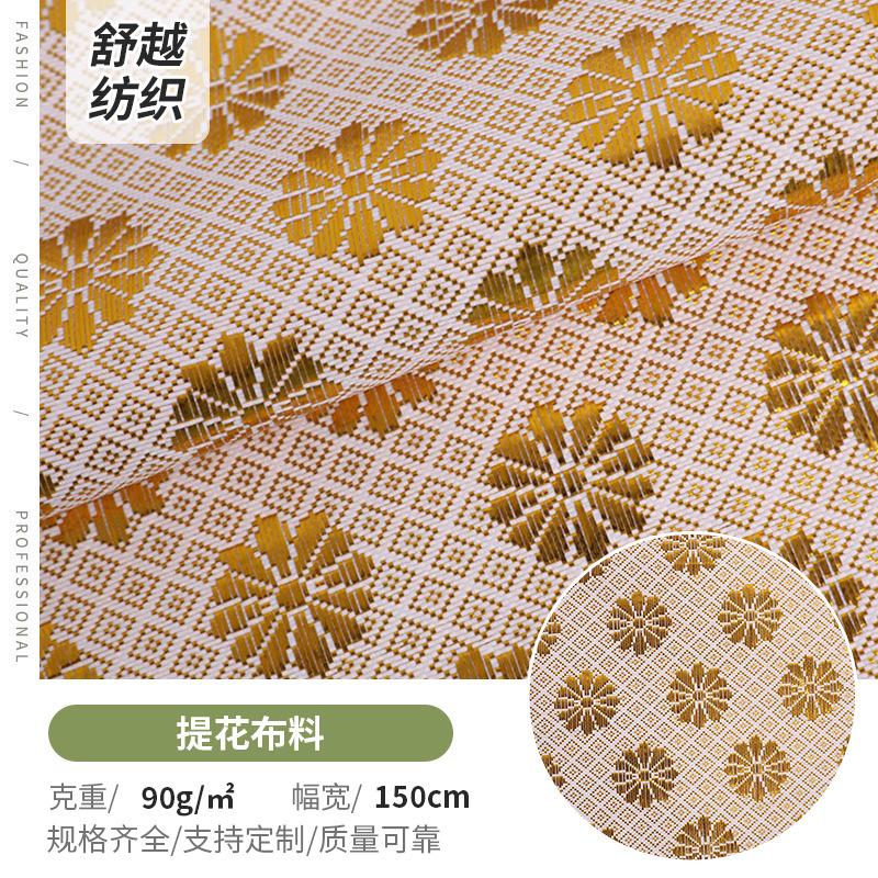 现货供应小雏菊装饰布金葱布金银丝小方格子布全涤提花布面料