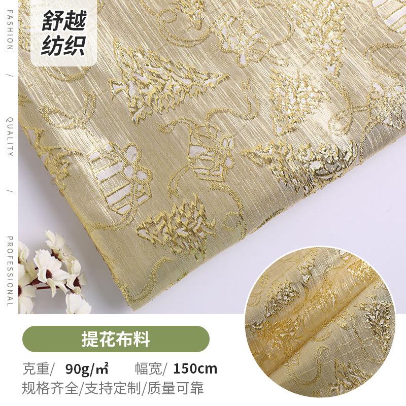 厂家浮雕金丝提花布面料舞台装饰布圣诞树图案烫金女装连衣裙布料